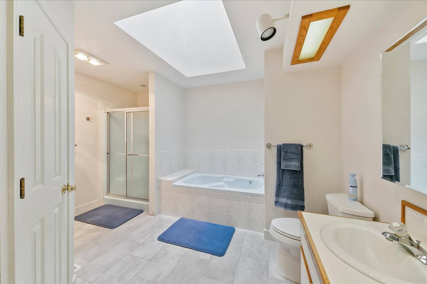 Fully stocked with all of your travel necessities: shampoo, conditioner, body wash, and hairdryers in both bathrooms.