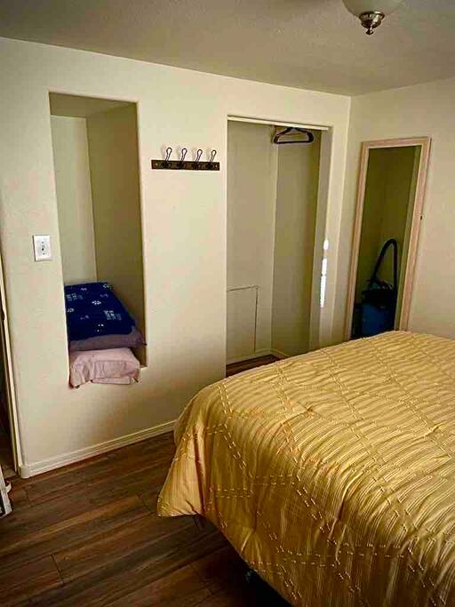 John’s place has a lot of pluses- private, off road parking, quiet, very comfortable beds, lots of bureau drawers, ample kitchen space, very clean, comfortable couch in living room, washer/dryer combo very convenient, courtyard available for sitting outside(when he gets some small tables and lawn chairs).If more than two folks stay there, a comfortable chair in the living room would help. The location is perfect for easily accessing by car old town, downtown, the mountains, the petroglyphs, etc.