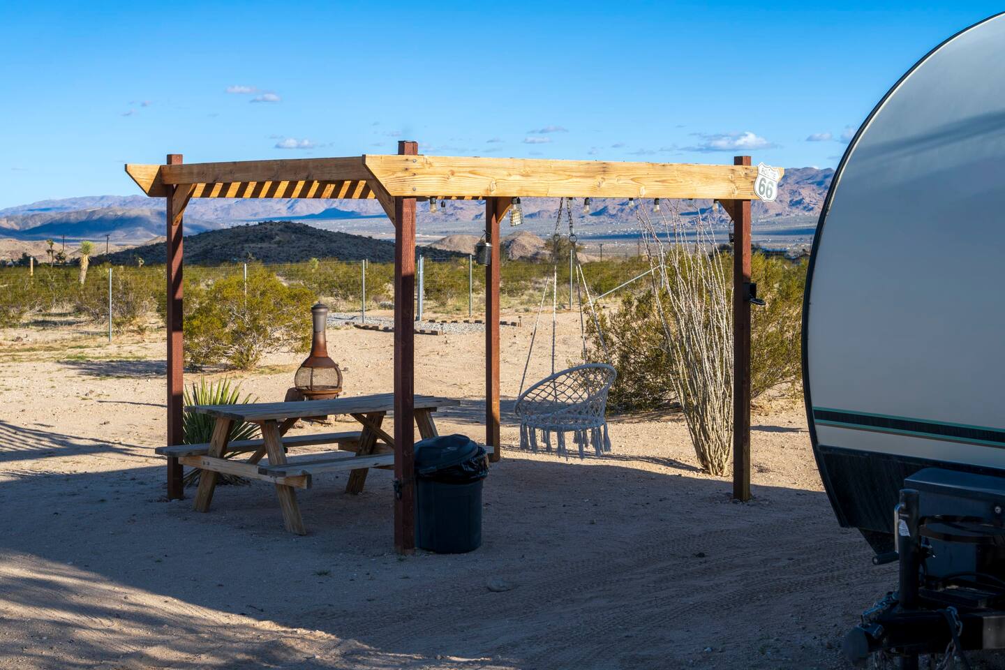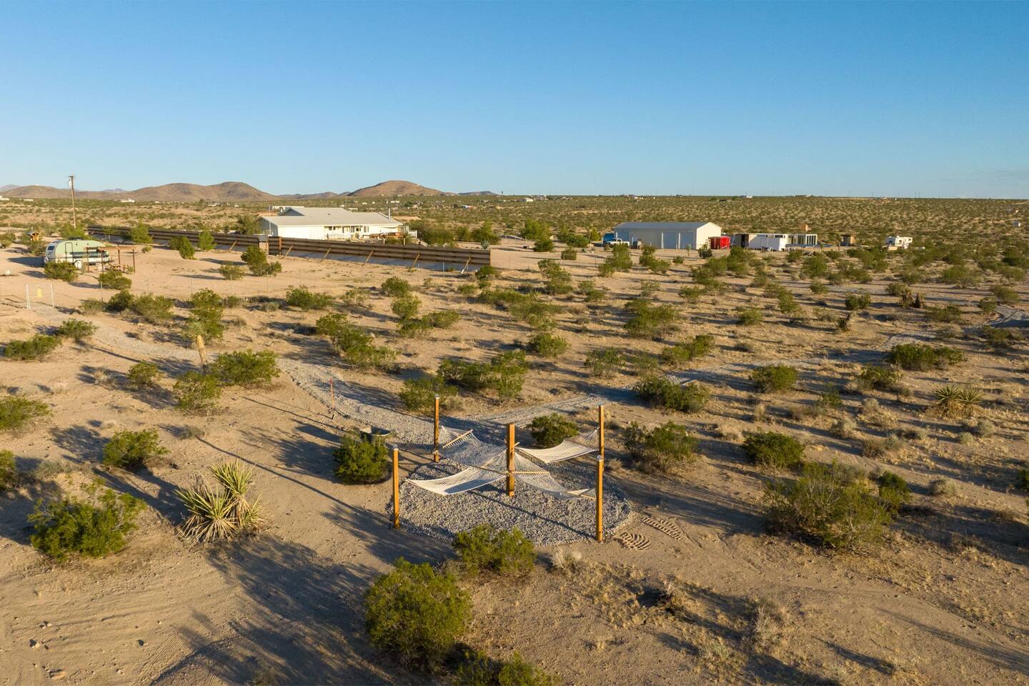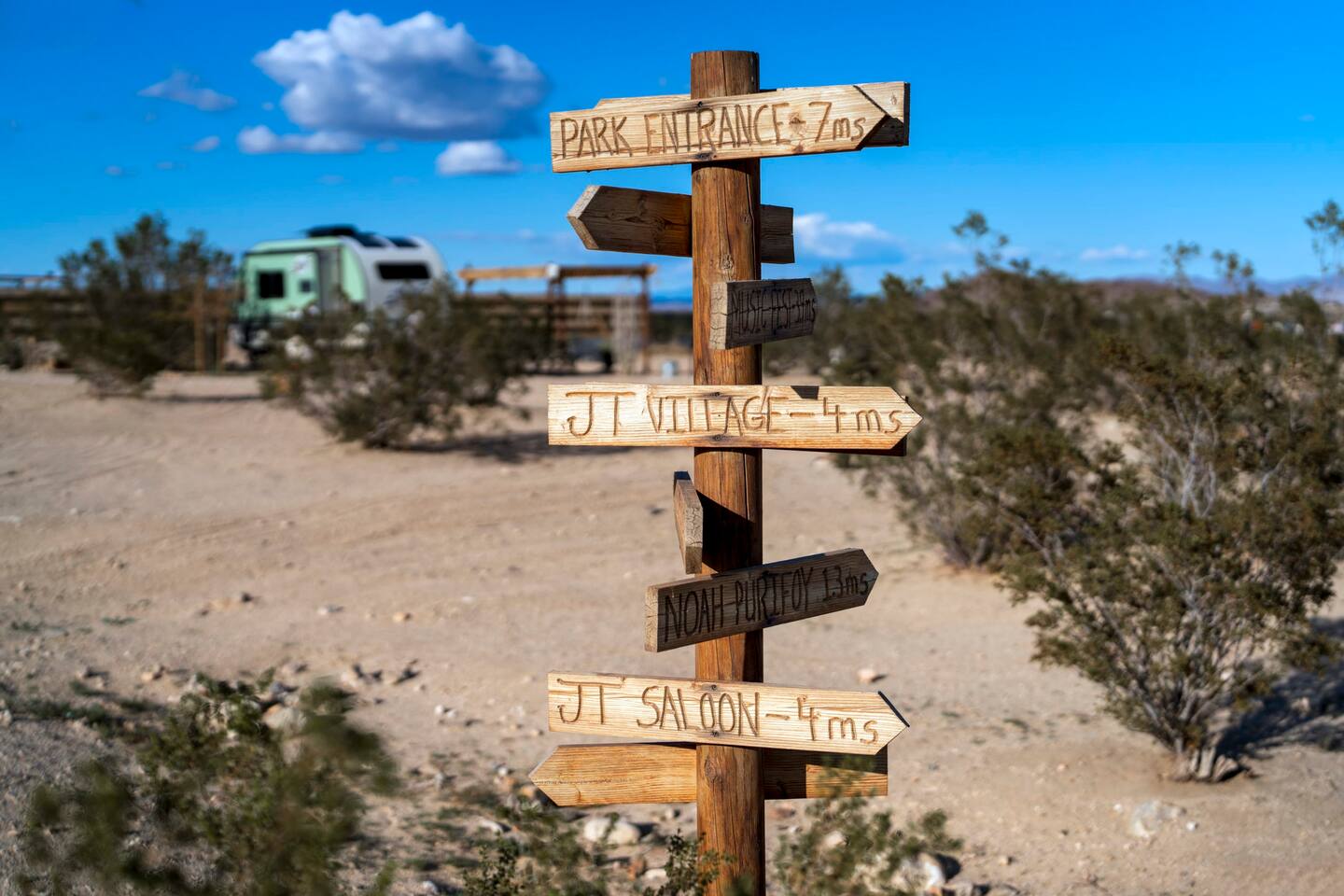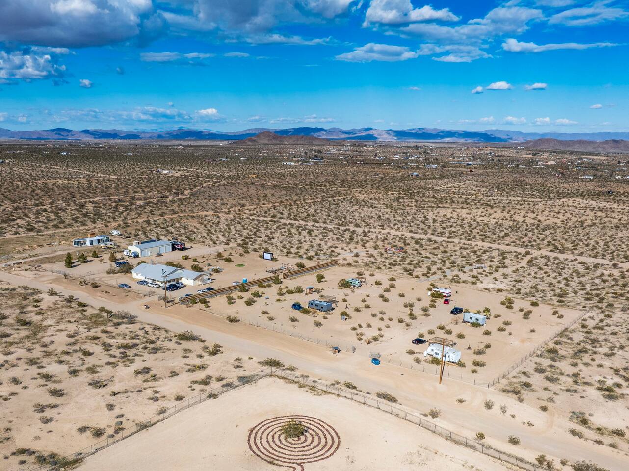 With surprises and photo ops around every corner, this campground is bursting with character and provides something unique for everyone. The stories are made outdoors with acres to roam, a year round hot tub, an outdoor fire pit and lighted horseshoe pits to play under the stars. Enjoy making memories under the most epic sky while taking in the mesmerizing views of the Copper Mountains to the East, Joshua Tree National Park to the South, and the snow capped Big Bear Mountains to the West. You’ll feel secluded, yet be centered in the middle of everything that rules in the desert. Like a true ranger, be on the lookout for shooting stars in the clear night skies, spot wildlife during an afternoon hike, or discover your inner-self at our outdoor yoga space -- everything you need is here including plenty of outdoor activities, making it the perfect spot for a family vacation or retreat.