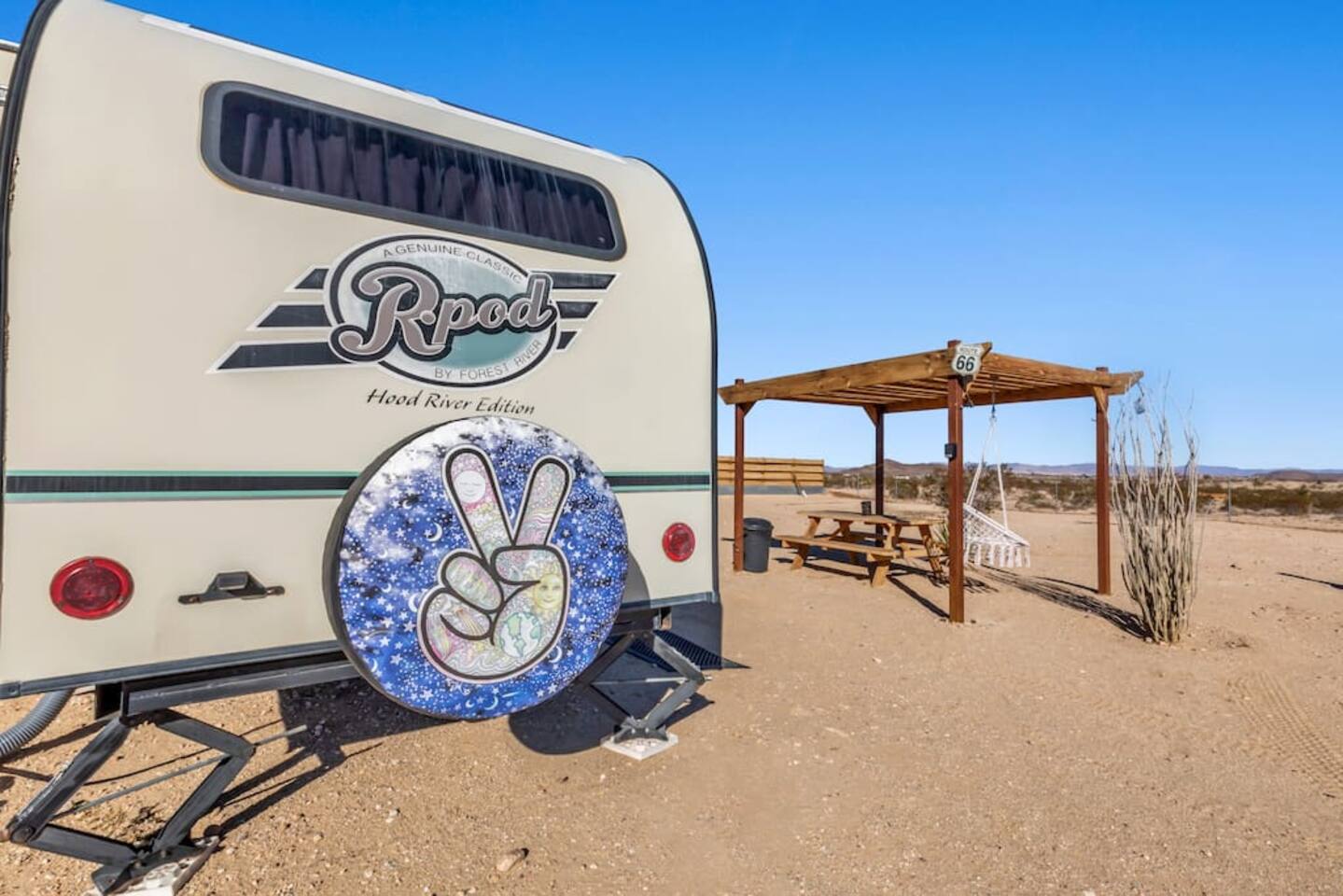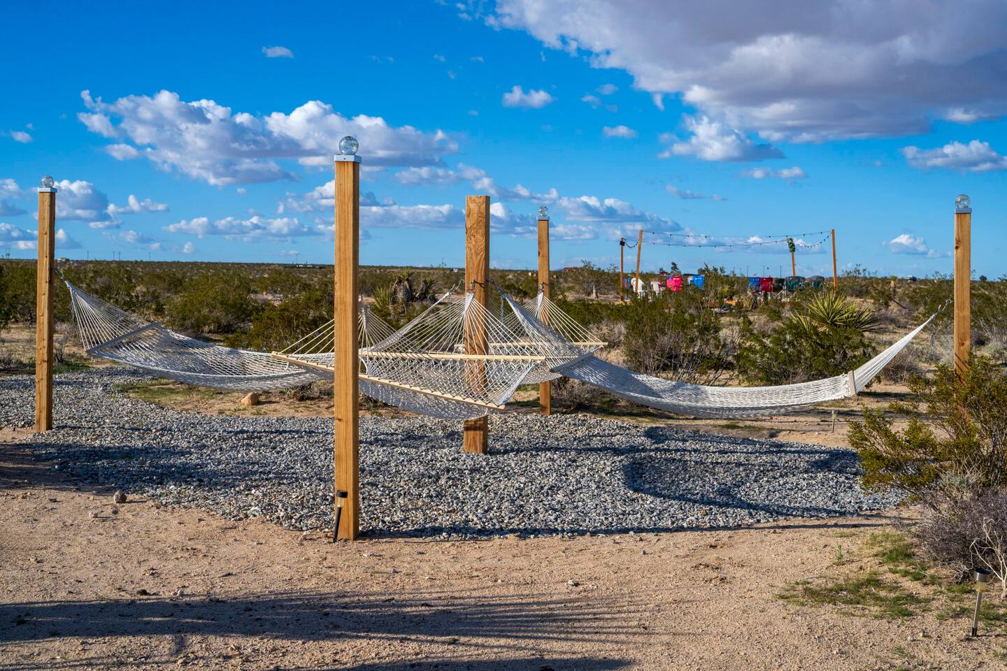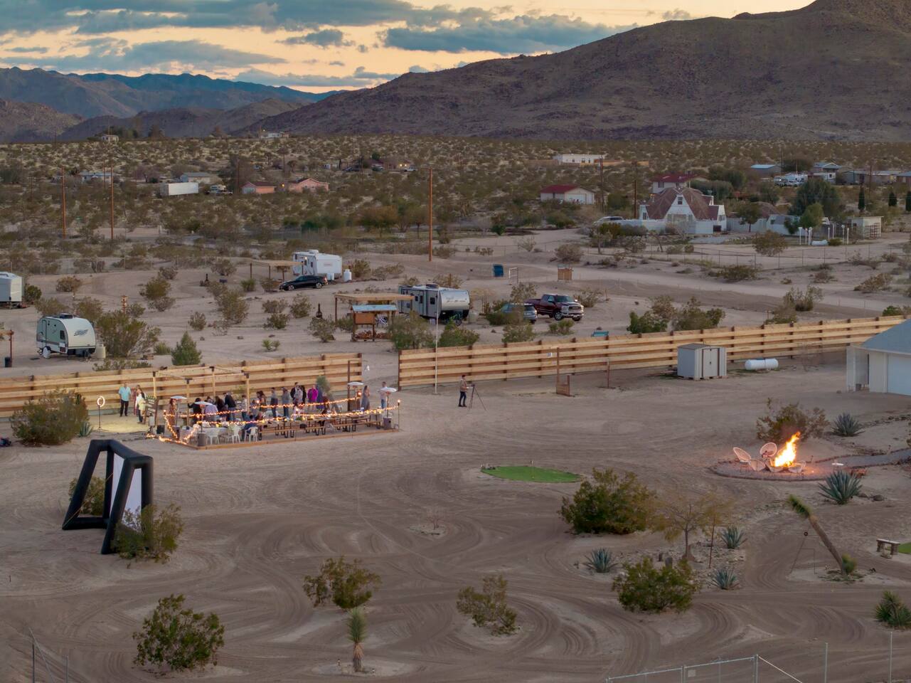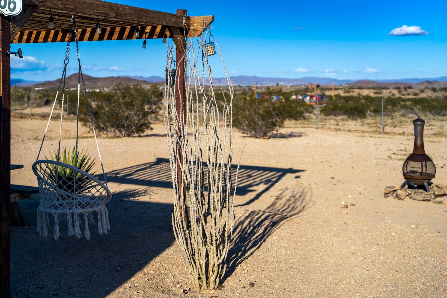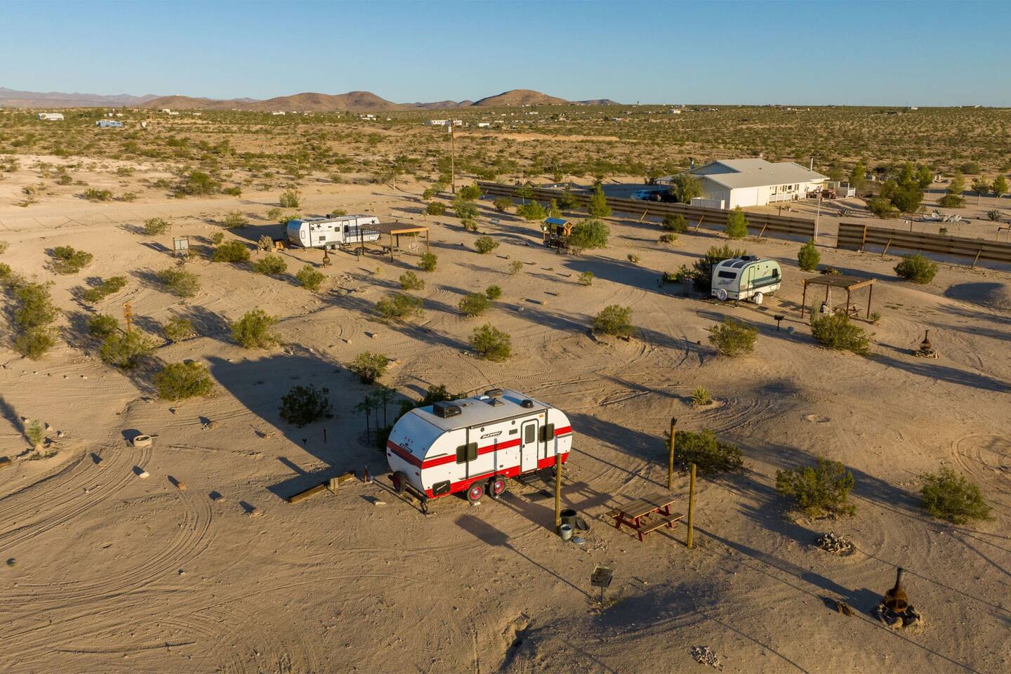 With surprises and photo ops around every corner, this campground is bursting with character and provides something unique for everyone. The stories are made outdoors with acres to roam, a year round hot tub, an outdoor fire pit and lighted horseshoe pits to play under the stars. Enjoy making memories under the most epic sky while taking in the mesmerizing views of the Copper Mountains to the East, Joshua Tree National Park to the South, and the snow capped Big Bear Mountains to the West. You’ll feel secluded, yet be centered in the middle of everything that rules in the desert. Like a true ranger, be on the lookout for shooting stars in the clear night skies, spot wildlife during an afternoon hike, or discover your inner-self at our outdoor yoga space -- everything you need is here including plenty of outdoor activities, making it the perfect spot for a family vacation or retreat.