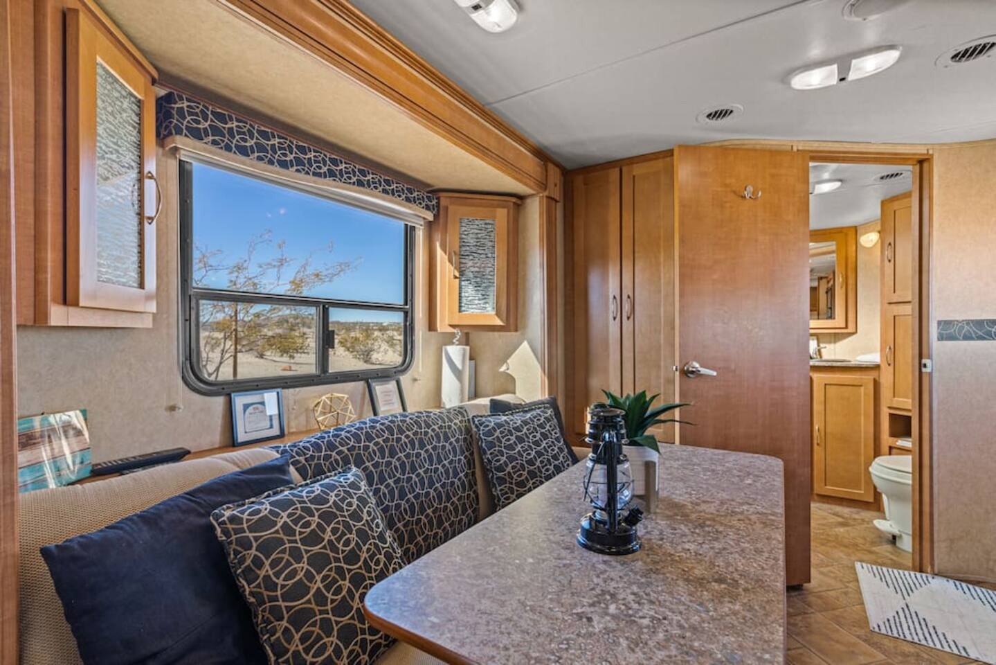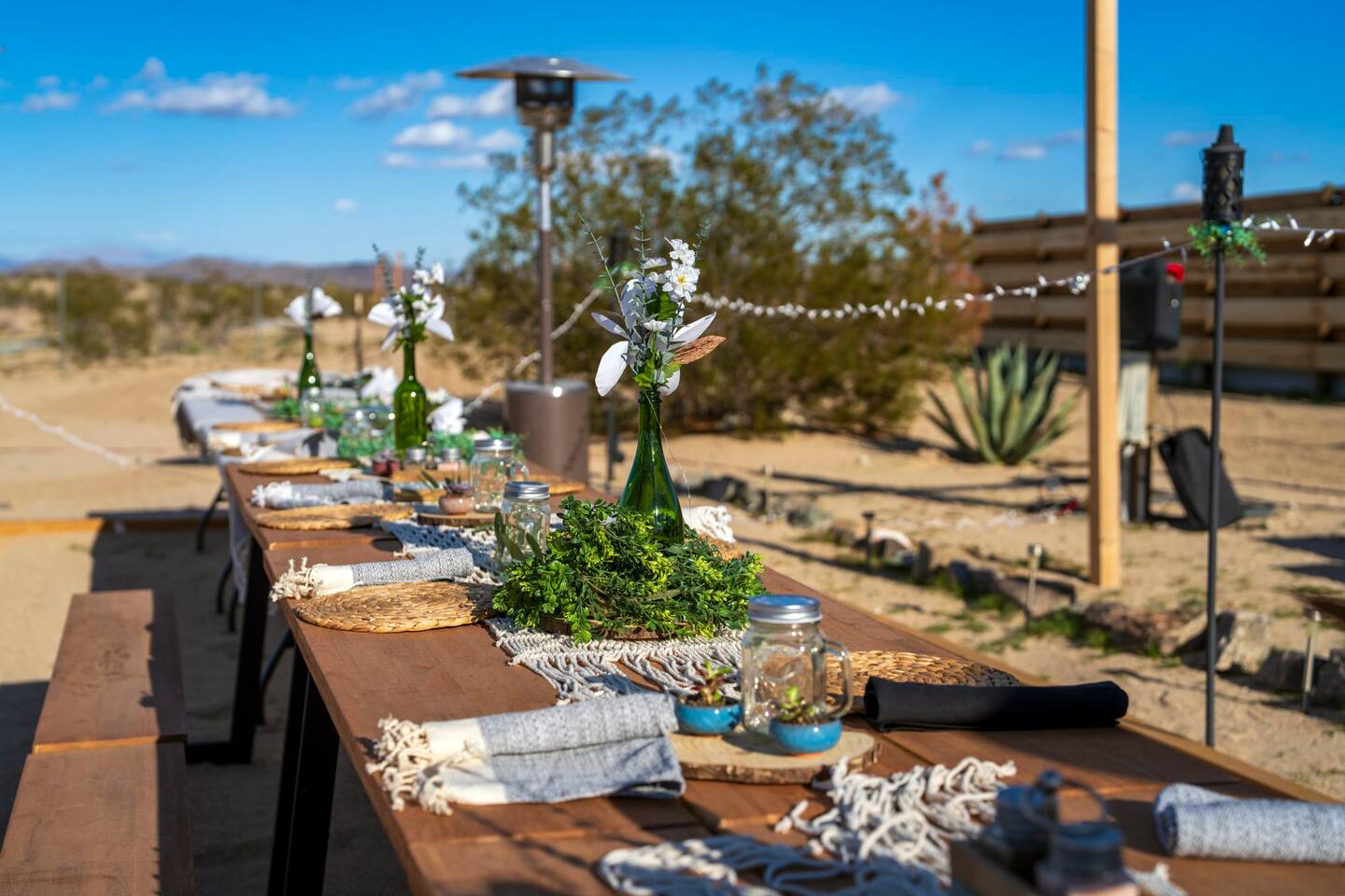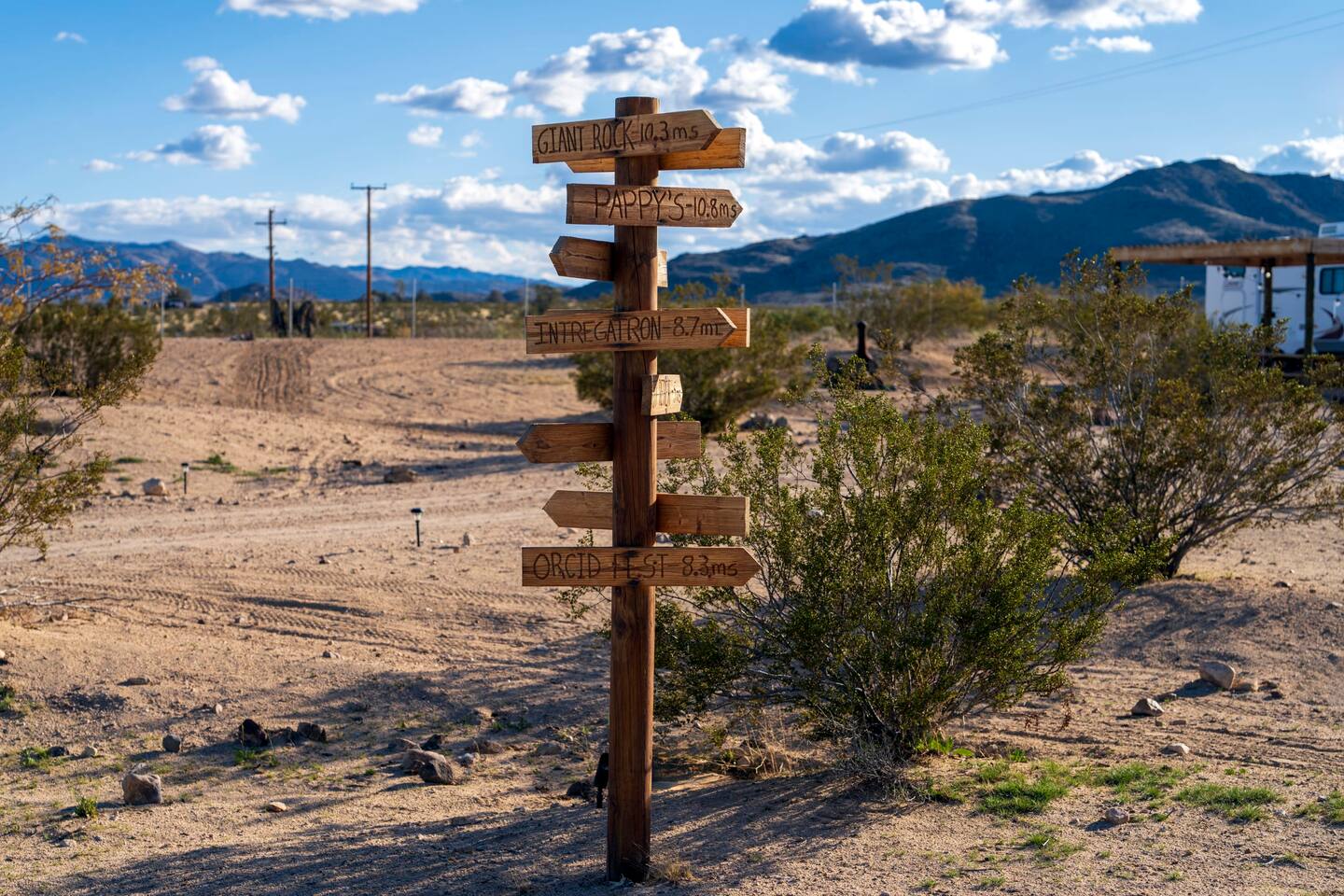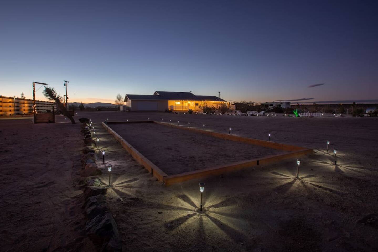 With surprises and photo ops around every corner, this campground is bursting with character and provides something unique for everyone. The stories are made outdoors with acres to roam, a year round hot tub, an outdoor fire pit and lighted horseshoe pits to play under the stars. Enjoy making memories under the most epic sky while taking in the mesmerizing views of the Copper Mountains to the East, Joshua Tree National Park to the South, and the snow capped Big Bear Mountains to the West. You’ll feel secluded, yet be centered in the middle of everything that rules in the desert. Like a true ranger, be on the lookout for shooting stars in the clear night skies, spot wildlife during an afternoon hike, or discover your inner-self at our outdoor yoga space -- everything you need is here including plenty of outdoor activities, making it the perfect spot for a family vacation or retreat.