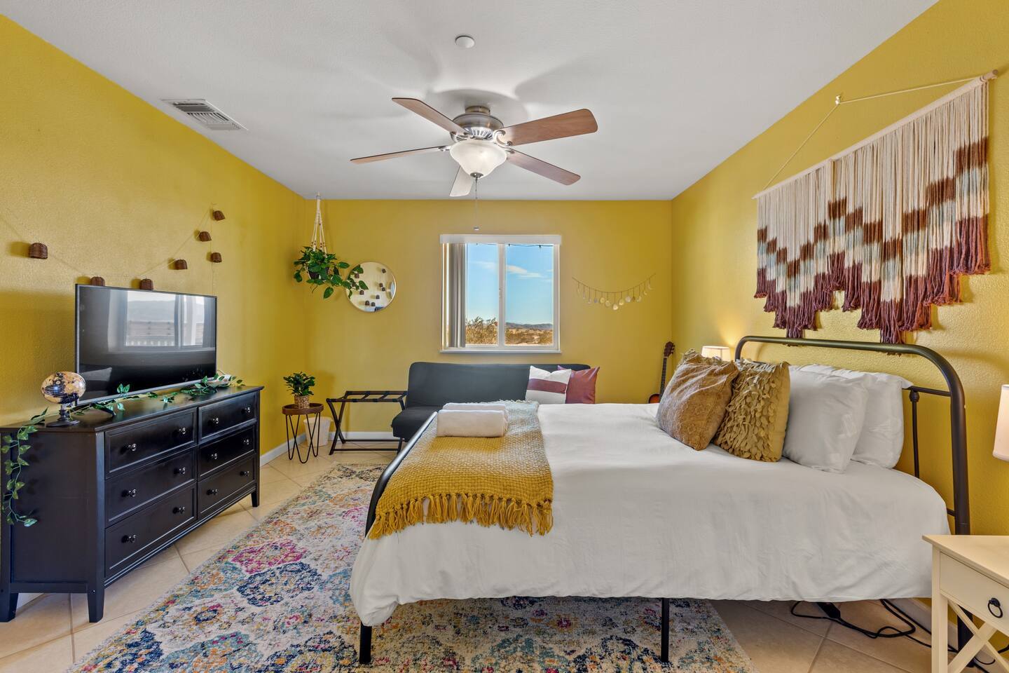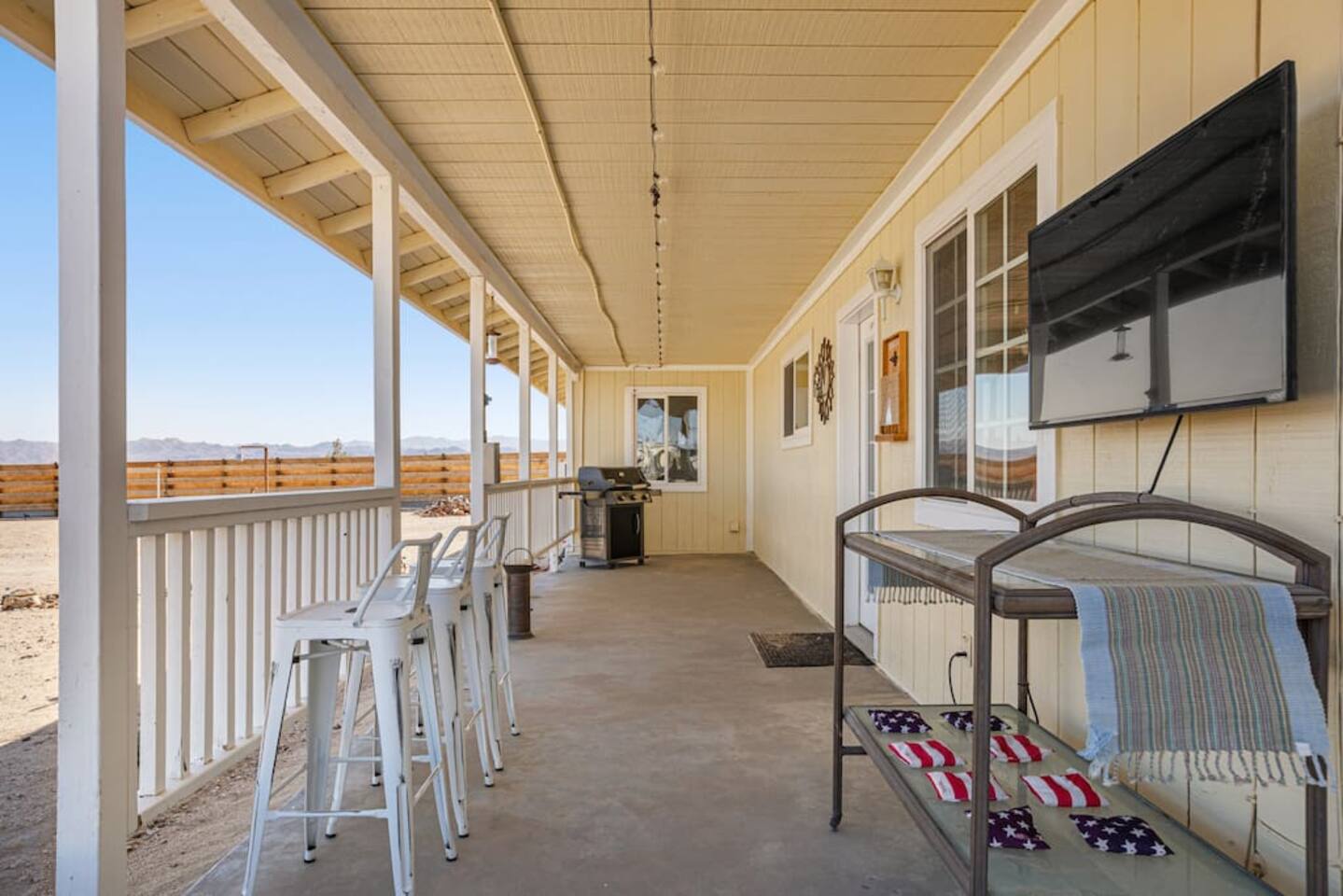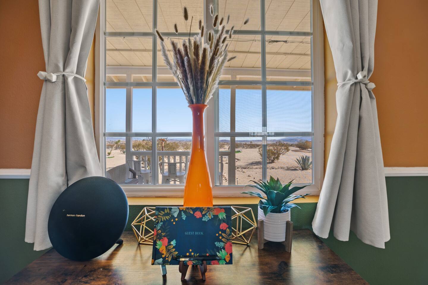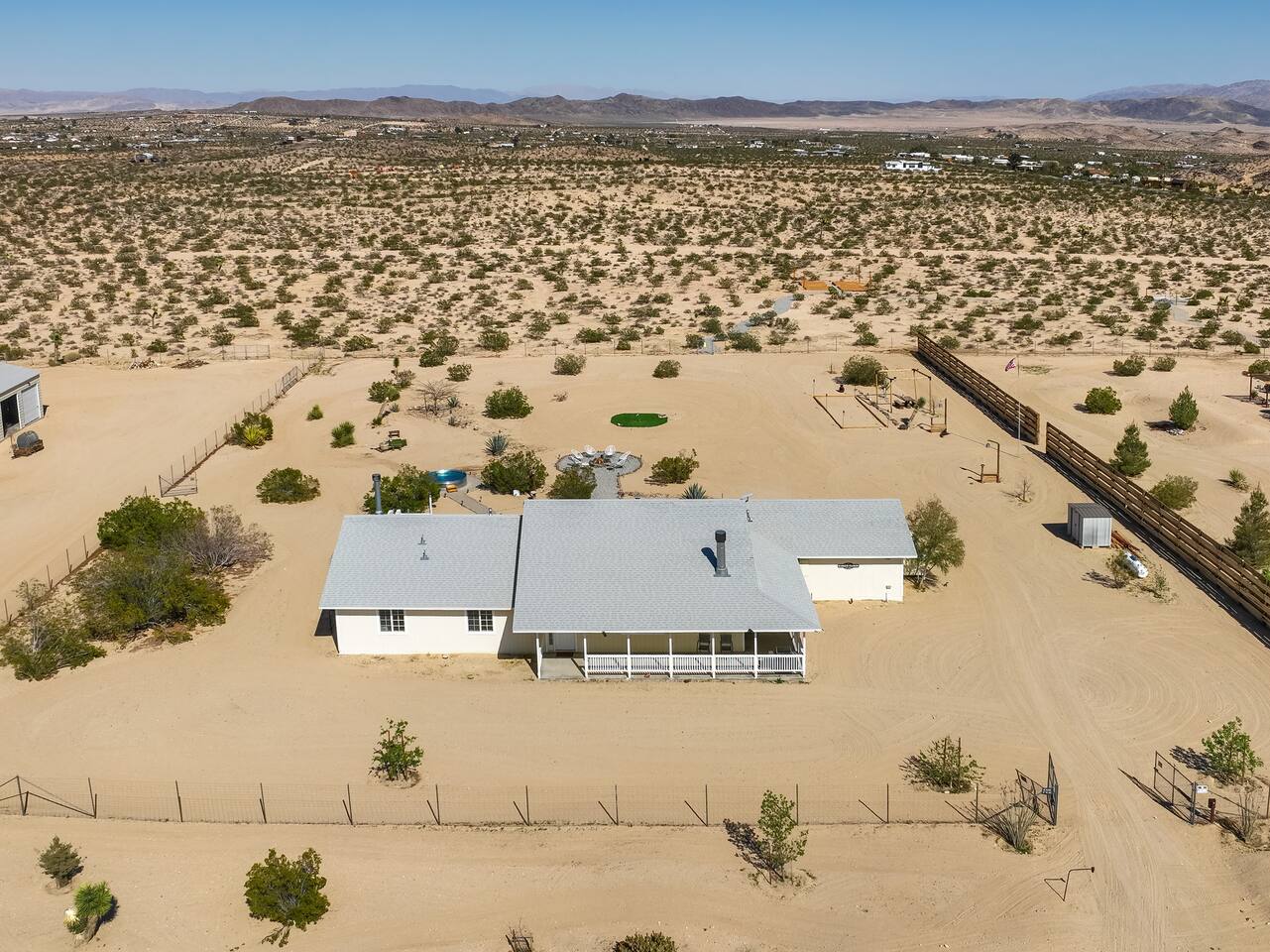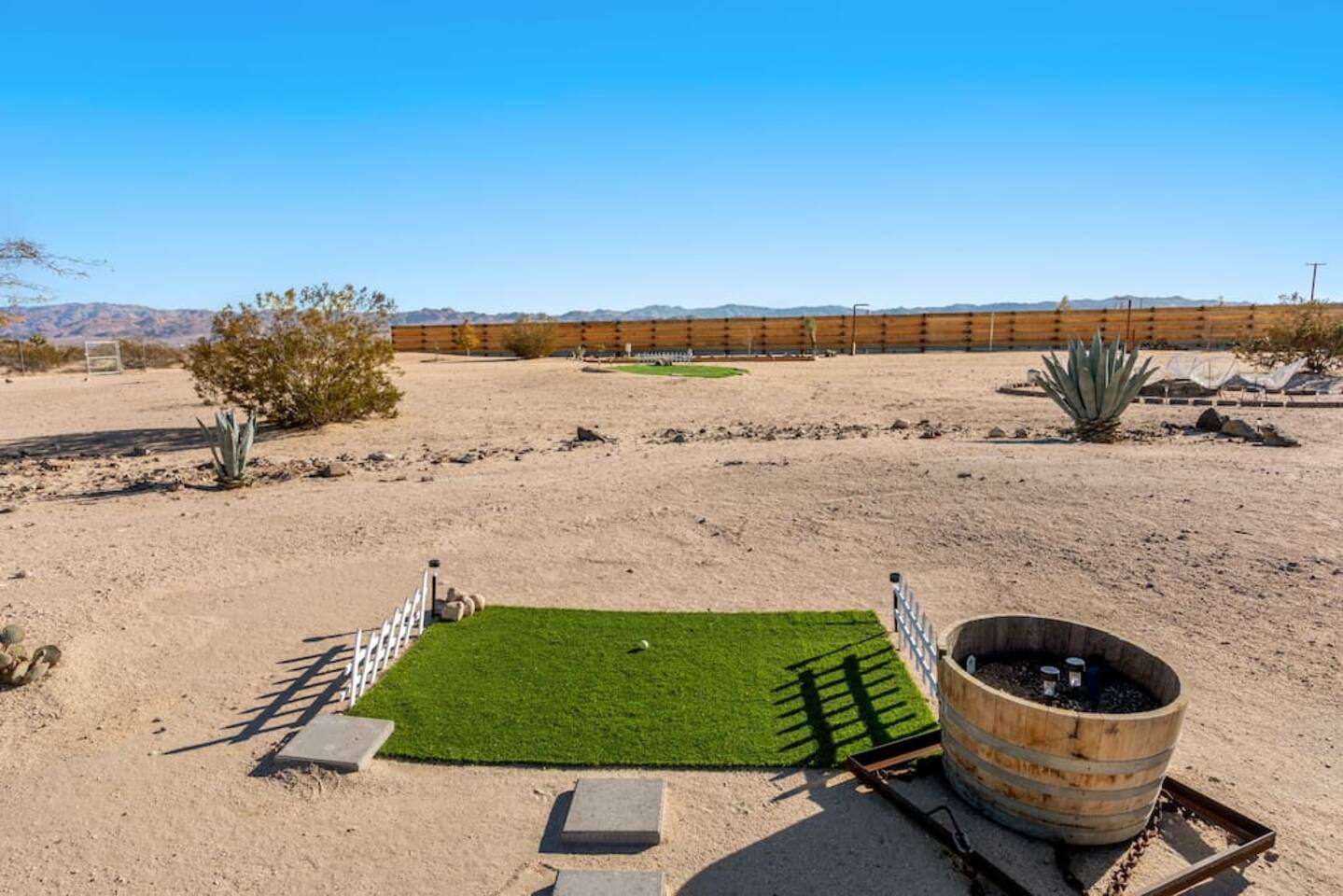 Restore your roots with all the creative energy flowing through this desert hideaway. Everything has been thought of to give you the most restorative experience imaginable. Retreat to the patio to soak in the hot tub, BBQ with the family, or play horseshoes at sunset. Enjoy making memories under the most epic sky while taking in the mesmerizing views of the Copper Mountains to the east, JT National Park to the south, and the snow-capped Big Bear Mountains to the west. You’ll feel secluded yet be right in the middle of everything that rules in the desert.