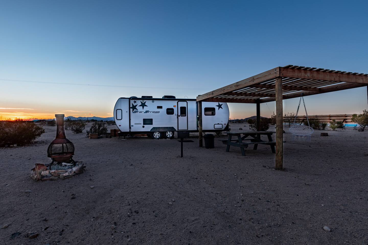 Star Stream, the modern off-the-grid campground, offers a unique and classic retro experience. Located in the heart of Joshua Tree, this is the perfect basecamp for all your desert adventures. Explore the stunning scenery, experience local attractions and make unforgettable memories in this serene setting. With a range of amenities and beautiful views, Star Stream gives you the perfect mix of comfort and adventure. Get ready to create lasting memories in this one-of-a-kind destination!